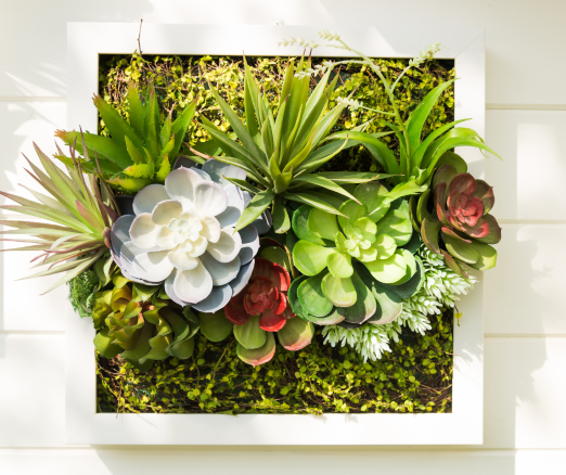 Jednym z mniejszych rozwiązań są zielone obrazy z roślin, które mogą zajmować niewielką część ściany w naszym domu lub biurze. Do stworzenia zielonych obrazów bardzo często wykorzystuje się rośiny doniczkowe lub mech – żywy lub preparowany, czyli specjalnie wysuszony (czasami dodatkowo koloryzowany). W przypadku roślin i żywego mchu musimy dbać o podlewanie i regularne spryskiwanie wodą, chyba że nasz zielony obraz z mchu znajduje się w łazience, wtedy mech może pobierać wilgoć z powietrza. Mech preparowany nie wymaga żadnej troski, nie potrzebuje światła ani wilgoci i może znajdować się w ciemnych pomieszczeniach, gdzie będzie stanowić miłą dekorację.